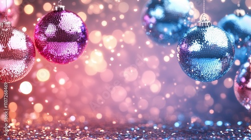 Decorative Pastel Disco Balls in Shimmering Pink and Blue Backdrop