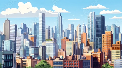 A panoramic cityscape showing both modern skyscrapers and traditional buildings
