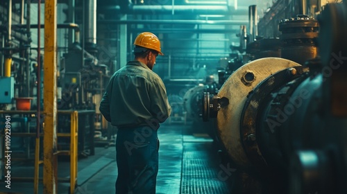 Maintenance manager overseeing preventive maintenance tasks, ensuring equipment is serviced regularly, preventing downtime, optimizing operations with a structured plan in an industrial setting