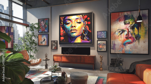 Smart tv stand in center of the city, smock around it creative manipulation creative art