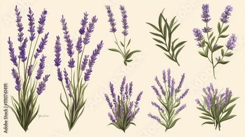 Lavender Flowers: Botanical Illustration of Purple Flowers