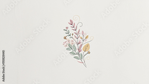 minimal botanical graphic sketch drawing, trendy tiny tattoo design, floral elements vector illustration