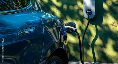 #651522821EV Charging Station Close-up Composition, Green Background, Sustainable Energy, Electric Vehicle, EV Charging Electric Car, Green Energy