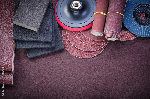 Composition of abrasive tools on sandpaper directly above