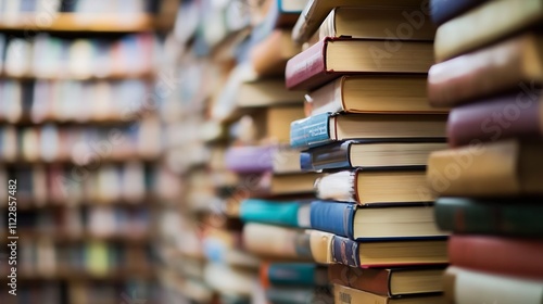Stacks of books in a cozy library representing knowledge and learning : Generative AI