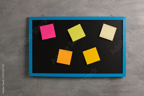 blackboard with Note Paper on cement background
