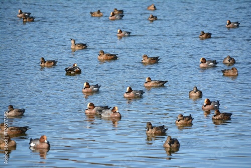 休んでいるカモの群れ