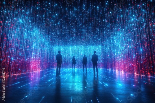 Silhouettes of People Gazing at a Futuristic Data Stream
