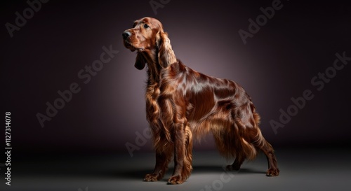 Majestic irish setter in studio lighting highlighting elegant silhouette and rich coat