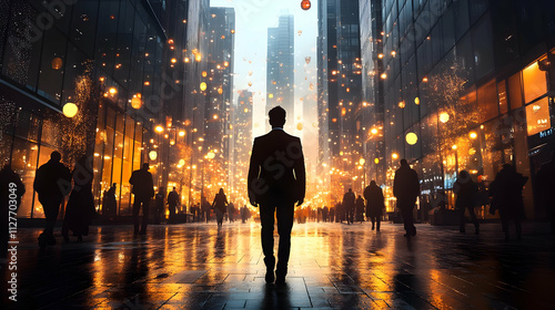 Night City: Urban Lights, Man Walks Alone, Golden Glow
