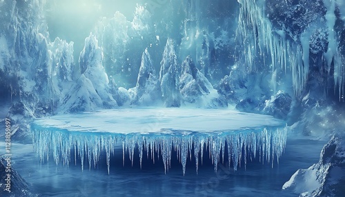 Frosty Transparent Ice Podium with a Smooth Surface Set in a Winter Wonderland Environment