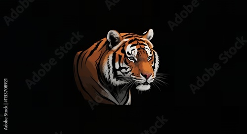 A sleek black tiger illustration with white outlines, featuring elegant curves and sharp angles for a dynamic and bold design on a solid black background.