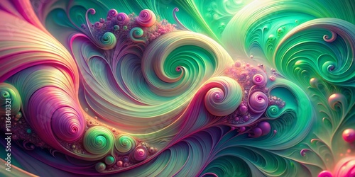 Abstract Swirl 3D Render, Pink Green Purple, Long Exposure, Colorful Background, Psychedelic Art, Digital Art