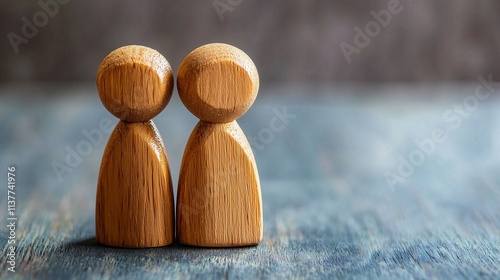 Two wooden figures symbolize unity and connection in marriage counseling.