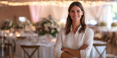 Wedding planner standing proudly in an event space, ready to organize and coordinate a perfect celebration