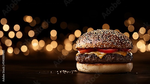 A perfectly cooked hamburger atop a bun smothered in melted cheese and drizzled with tangy ketchup, finished with a juicy tomato and cris