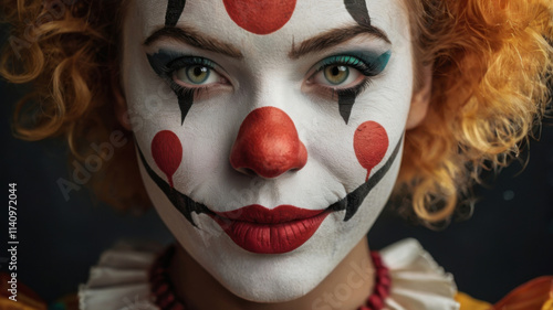 Hermosa joven payaso de cerca