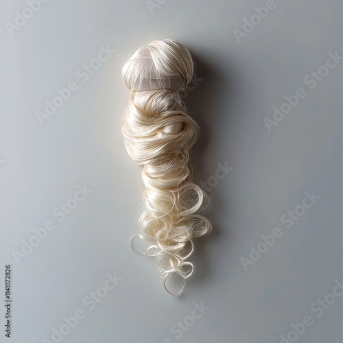 A long, naturally styled blonde wig isolated against a white background.A natural look long blonde wig on a white backdrop.A long blonde wig with a natural appearance, isolated on a white