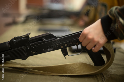 Arms assembly. Military training. Firearm.