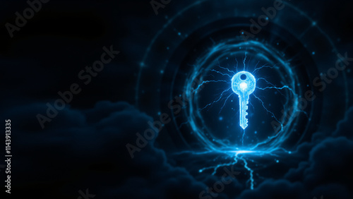 A captivating blue key surrounded by glowing energy, symbolizing unlocking potential and mystery.