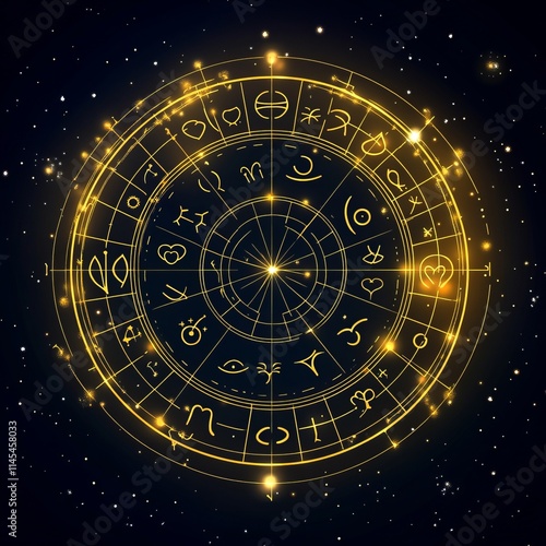 Celestial Zodiac Wheel Golden Astrological Chart in Space