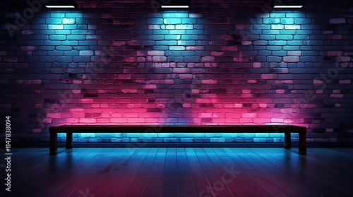 Colorful Neon Wall with Wooden Bench in Modern Interior Design