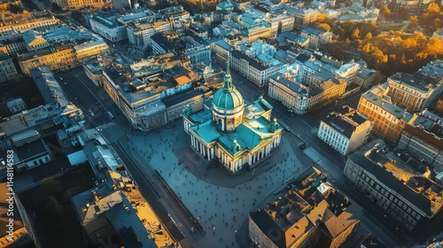 Helsinki, Finland. City center aerial view. Helsinki Cathedral. Senate square. Market Square, From Drone.