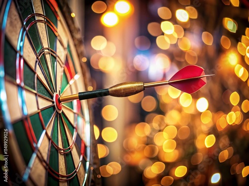 Vintage Dartboard Success: Bullseye Hit, Achieving Goals, Target Aim