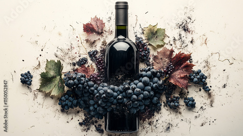 butelka wina z owocami winogron na jasnym tle, baner generative ai