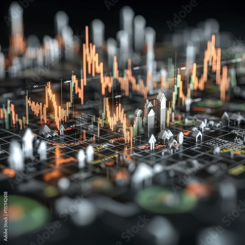 Real Estate Market Growth Abstract Cityscape with Stock Charts