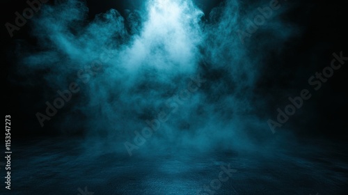 Mystical mist. Swirling smoke in dark and light symphony. Fluid fantasia. Abstract dance of fog and light on floor with black background