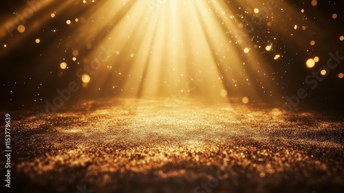 dramatic light rays breaking through dark background with ethereal glowing particles and atmospheric dust creating heavenly beam effects