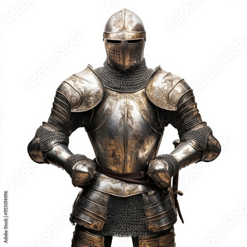 Medieval knight in full armor, isolated on white.