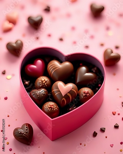 boite de chocolat rose en forme de cœur avec des petits chocolats dedans en forme de cœur