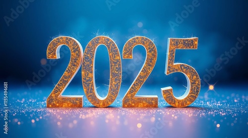 2025 Glowing Gold Numbers with Blue Background and Sparkles in Festive New Year Digital Art