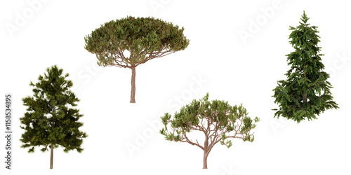 Top view of four coniferous trees