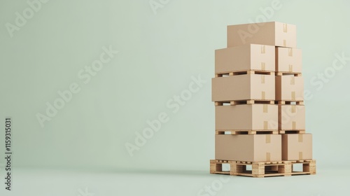 Stacked Cardboard Boxes on Wooden Pallet Against a Neutral Background For Logistics, Shipping, Storage, and Warehouse Concepts