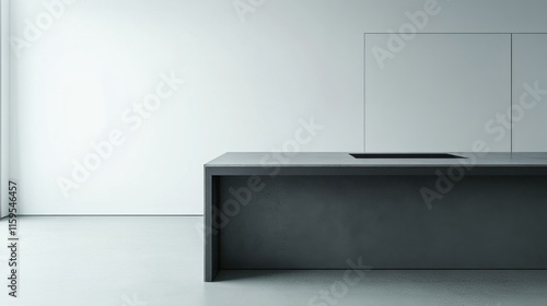 Modern minimalist kitchen island with minimal decor. Featuring clean lines and a functional design
