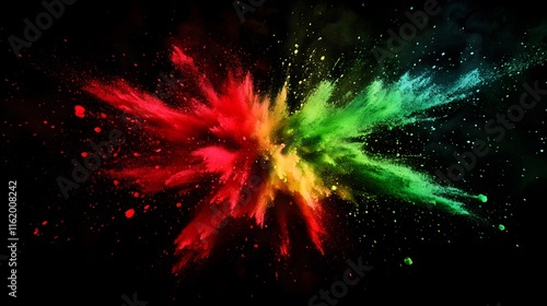 A creative collision of colorful splashes in the center with hues of red and green blending into one another