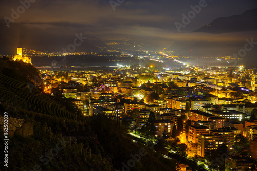 Widok na miasto oświetlone w górach Szwajcarskich.