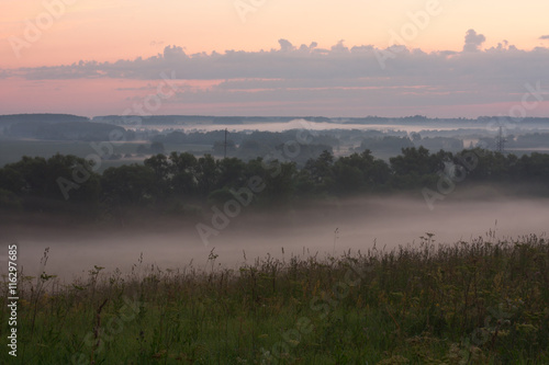 Morning Landscape With Dense Fog At Summer.