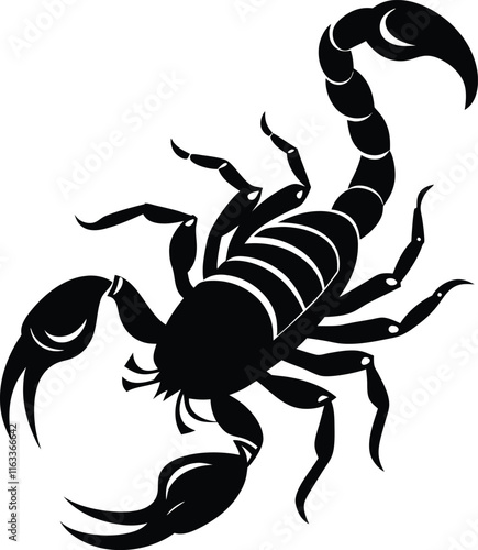 Black Scorpion Vector Illustration: Detailed Silhouette Graphic of a Scorpion with Claws and Stinger, Insect Art Design