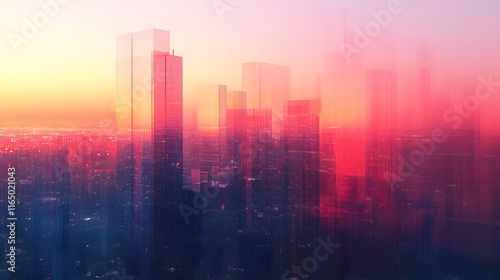 Futuristic Cityscape at Sunset Glowing Towers