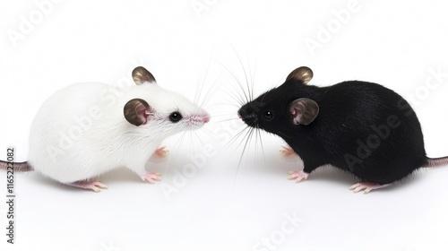 Interaction of black and white mice in a studio setting animal photography minimalist environment close-up view