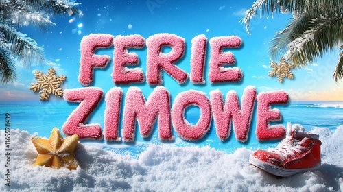 Tropikalne ferie zimowe na plaży z ozdobami świątecznymi