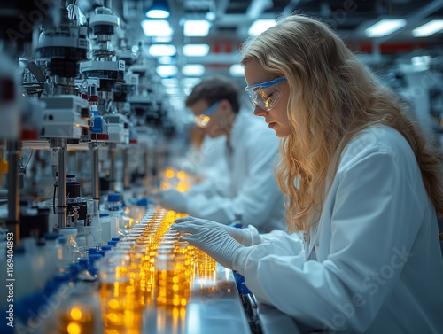 Kobieta naukowiec pracuje w nowoczesnym laboratorium chemicznym