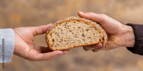 Random Acts of Kindness Day Concept. Sharing a loaf of bread between two hands