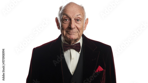 An Elegant Vintage Photograph of an Old Man Wearing a Luxurious Velvet Smoking Jacket, Perfect for Enhancing Home Decor, Invitations, or Nostalgic Art Collections.