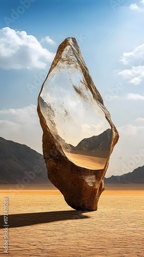 Surrealistyczne kształty w niezwykłych przestrzeniach: kolekcja przezroczystych kul i geometrycznych form w pustynnym oraz morskim otoczeniu, tworząca futurystyczną i artystyczną atmosferę