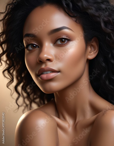Piękna, ciemnoskóra kobieta, zbliżenie na twarz, beauty